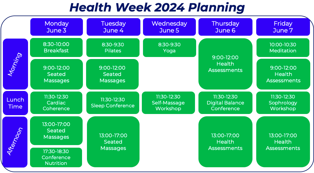 Nous somme très heureux de vous présenter la Wellness Week 2024 avec beaucoup de nouveautés.